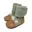 The adjustable flap closure makes them easy to put on even the squirmiest feet and secures around calves of all sizes for a comfortable fit. An elastic built into the ankle cuff gently holds them in place.